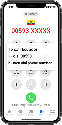 If you are calling Ecuador from another country, you need to add the telephone code "+593" before dialing the phone number.