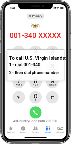 If you are calling U.S. Virgin Islands from another country, you have to add the telephone code "+1-340" before dialing the phone number.